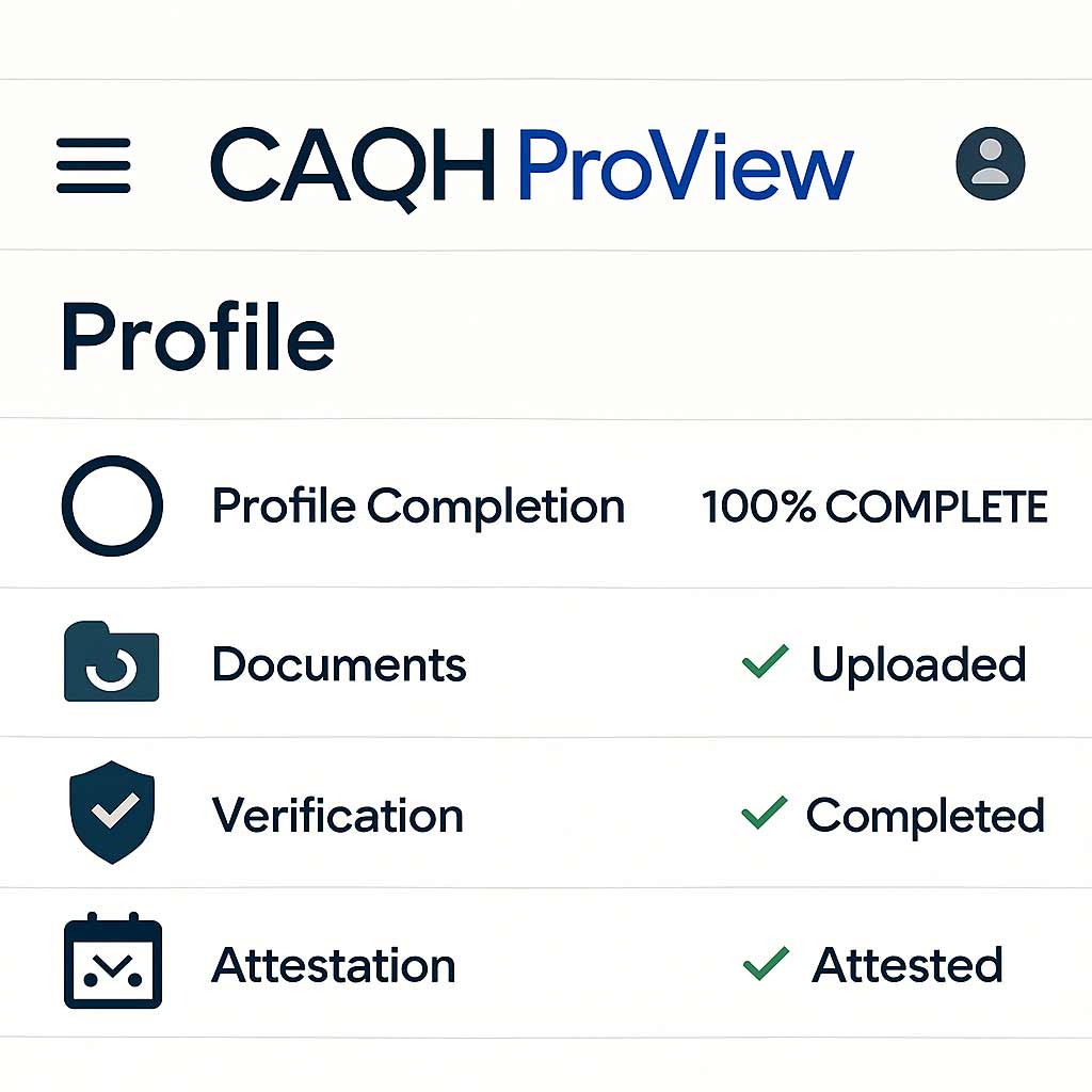 CAQH ProView is a universal credentialing database used by over 1,400 insurance companies. Instead of completing separate applications for each payer, you create one comprehensive CAQH profile containing all your credentials, which participating insurance companies then access for verification. CAQH is free for providers and mandatory for credentialing with virtually all commercial payers. You must complete every section, upload supporting documents, and “attest” your profile (confirm accuracy) for payers to access your information. Re-attestation is required every 120 days to keep your profile active. Without a complete, attested CAQH profile, commercial insurance credentialing cannot proceed.